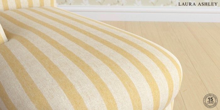 7.3.1 Buy Gloucester by Laura Ashley Chaise Longue Left Hand Kinsham Stripe Ochre Yellow Low Chrome Castor - Teak from the Seasons online shop Click here to use our website with more accessibility support, for example screen readers