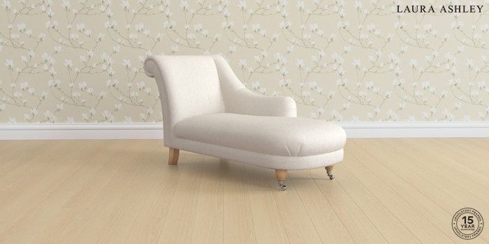 7.3.1 Buy Gloucester by Laura Ashley Chaise Longue Right Hand Anneliese Oyster Natural Low Chrome Castor - Light Oak from the Seasons online shop Click here to use our website with more accessibility support, for example screen readers