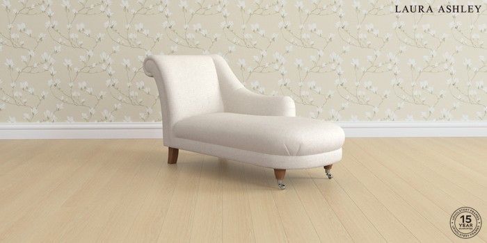 7.3.1 Buy Gloucester by Laura Ashley Chaise Longue Right Hand Anneliese Oyster Natural Low Chrome Castor - Teak from the Seasons online shop Click here to use our website with more accessibility support, for example screen readers