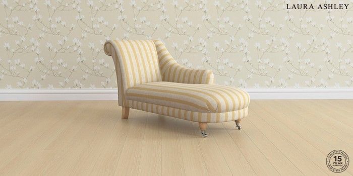 7.3.1 Buy Gloucester by Laura Ashley Chaise Longue Right Hand Kinsham Stripe Ochre Yellow Low Chrome Castor - Light Oak from the Seasons online shop Click here to use our website with more accessibility support, for example screen readers