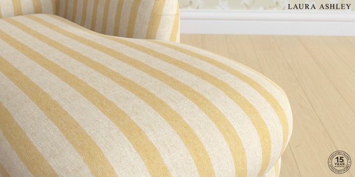 7.3.1 Buy Gloucester by Laura Ashley Chaise Longue Right Hand Kinsham Stripe Ochre Yellow Low Turned - Black from the Seasons online shop Click here to use our website with more accessibility support, for example screen readers