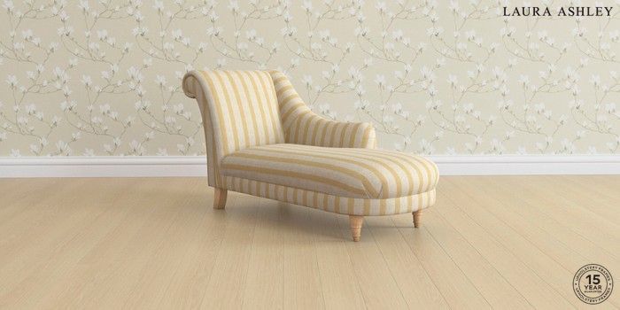 7.3.1 Buy Gloucester by Laura Ashley Chaise Longue Right Hand Kinsham Stripe Ochre Yellow Low Turned - Light Oak from the Seasons online shop Click here to use our website with more accessibility support, for example screen readers
