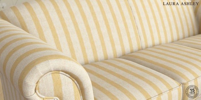 7.3.1 Buy Gloucester by Laura Ashley Medium Sofa Chaise - Universal Kinsham Stripe Ochre Yellow Low Brass Castor - Chestnut from the Seasons online shop Click here to use our website with more accessibility support, for example screen readers