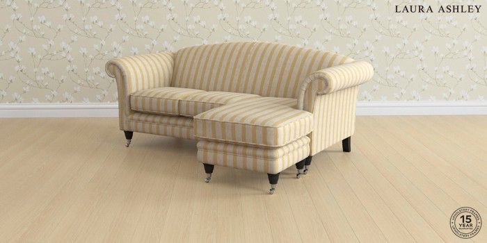 7.3.1 Buy Gloucester by Laura Ashley Medium Sofa Chaise - Universal Kinsham Stripe Ochre Yellow Low Chrome Castor - Black from the Seasons online shop Click here to use our website with more accessibility support, for example screen readers