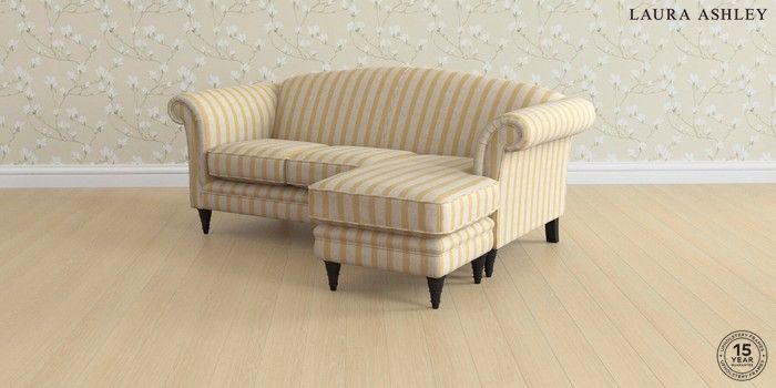 7.3.1 Buy Gloucester by Laura Ashley Medium Sofa Chaise - Universal Kinsham Stripe Ochre Yellow Low Turned - Black from the Seasons online shop Click here to use our website with more accessibility support, for example screen readers