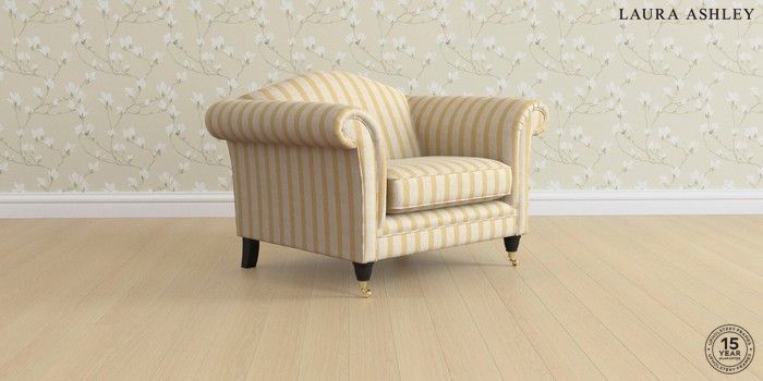 7.3.1 Buy Gloucester by Laura Ashley Snuggle Kinsham Stripe Ochre Yellow Low Brass Castor - Black from the Seasons online shop Click here to use our website with more accessibility support, for example screen readers