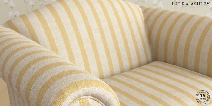 7.3.1 Buy Gloucester by Laura Ashley Snuggle Kinsham Stripe Ochre Yellow Low Chrome Castor - Chestnut from the Seasons online shop Click here to use our website with more accessibility support, for example screen readers
