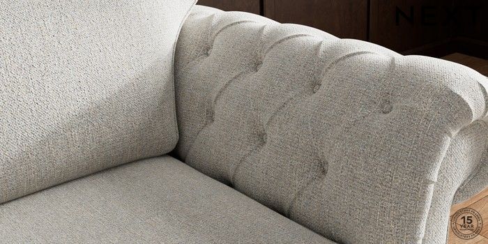 • . Over scaled arms with luxurious deep buttoning