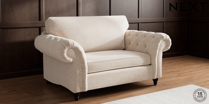 • . Over scaled arms with luxurious deep buttoning
