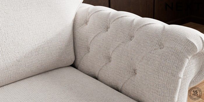 • . Over scaled arms with luxurious deep buttoning