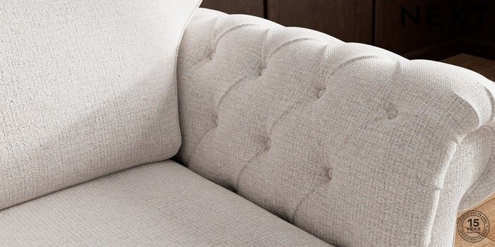 • . Over scaled arms with luxurious deep buttoning