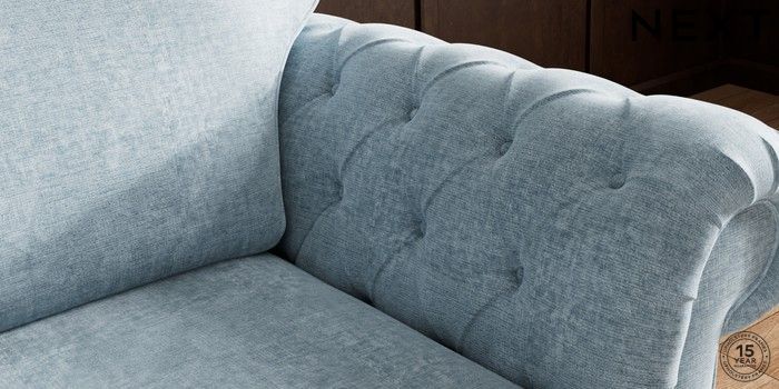 7.2.10 Buy Gosford Highback II Deep Sit 2 Seater Small Sofa Plush Chenille Light Blue Low Turned - Mid from the Seasons online shop Click here to use our website with more accessibility support, for example screen readers
