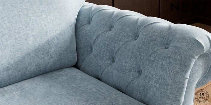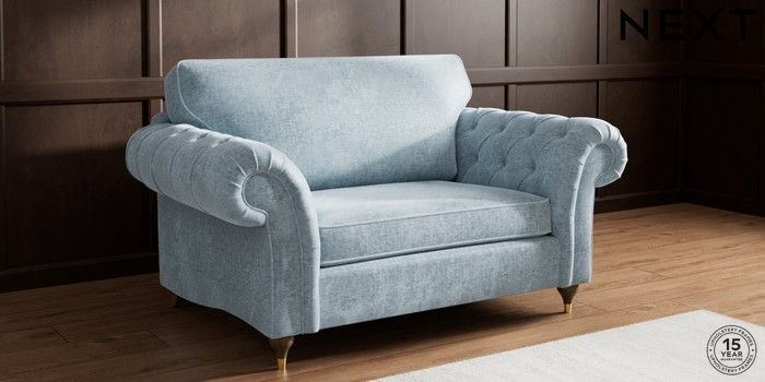 7.3.1 Buy Gosford Highback II Deep Sit 2 Seater Small Sofa Plush Chenille Light Blue Modern Turned Metal Cap - Mid from the Seasons online shop Click here to use our website with more accessibility support, for example screen readers