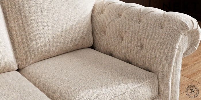 • . Over scaled arms with luxurious deep buttoning