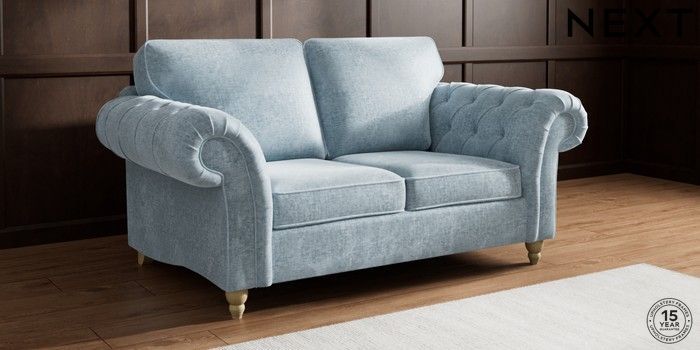 7.2.10 Buy Gosford Highback II Deep Sit 2 Seater Sofa Plush Chenille Light Blue Low Turned - Light from the Seasons online shop Click here to use our website with more accessibility support, for example screen readers