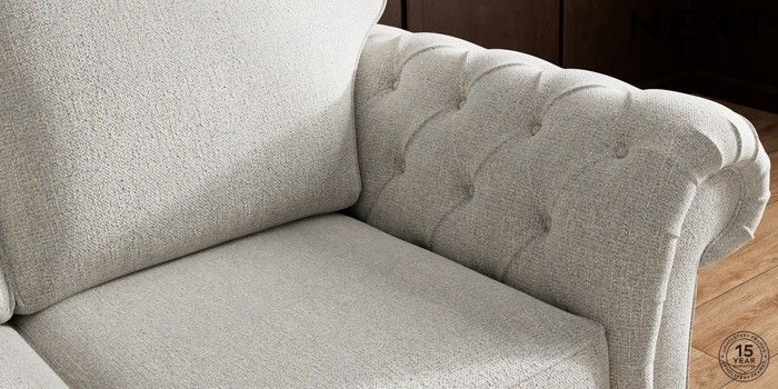 • . Over scaled arms with luxurious deep buttoning