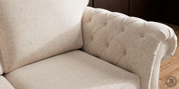 • . Over scaled arms with luxurious deep buttoning
