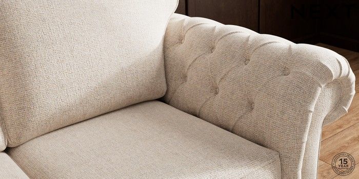 • . Over scaled arms with luxurious deep buttoning