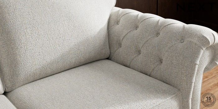 • . Over scaled arms with luxurious deep buttoning