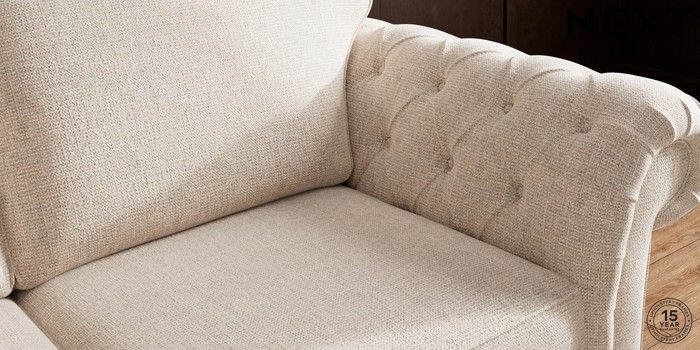 • . Over scaled arms with luxurious deep buttoning