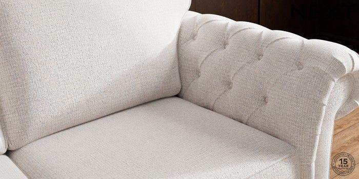 • . Over scaled arms with luxurious deep buttoning