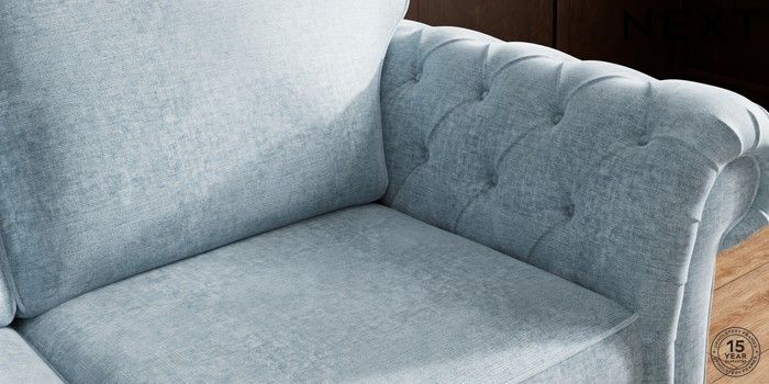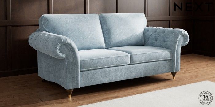 7.3.1 Buy Gosford Highback II Deep Sit 3 Seater Sofa Plush Chenille Light Blue Modern Turned Metal Cap - Mid from the Seasons online shop Click here to use our website with more accessibility support, for example screen readers