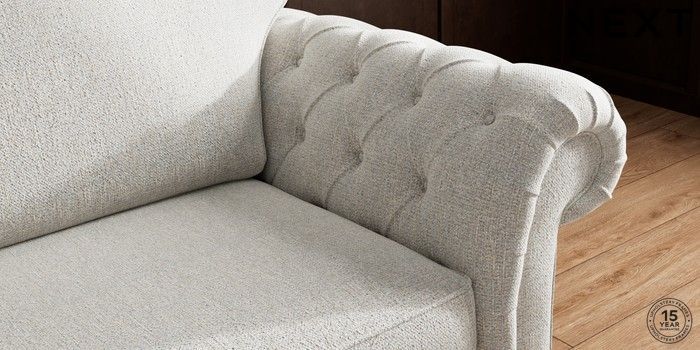• . Over scaled arms with luxurious deep buttoning