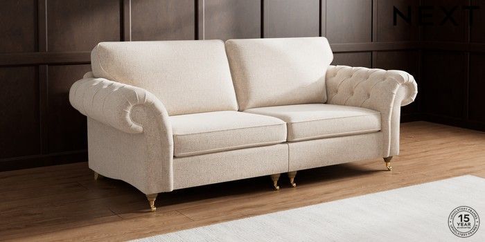 The Gosford High Back sofa brings all the charm and elegance of the classic Gosford, with added comfort thanks to its higher back cushions. The gorgeous deep buttoning on the arms really makes a style statement. This sofa features our special "Firmer Sit" seat cushions, which use a high-density foam core surrounded by soft toppers. This smart design provides ultimate support, lasting durability, and ensures the cushions always spring back to their tailored look. They're also wonderfully low-maintenance. For an extra touch of luxury, we've included plush scatter cushions filled with a rich fibre mix. The seat cushions are reversible too, so a quick flip and plump will keep them looking their best. Make the Gosford High Back uniquely yours by choosing from a huge range of fabrics and a choice of feet.