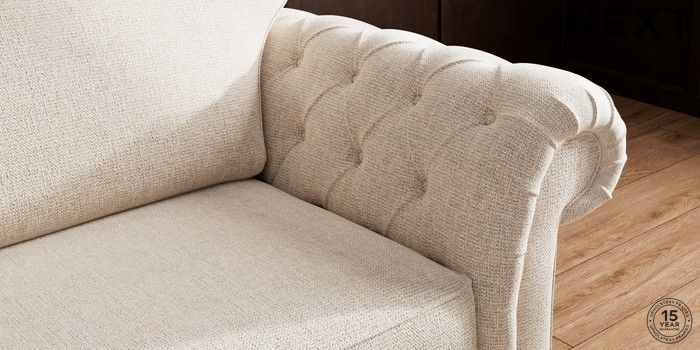 • . Over scaled arms with luxurious deep buttoning