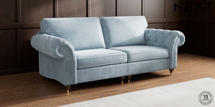 7.3.1 Buy Gosford Highback II Deep Sit 4 Seater Sofa Plush Chenille Light Blue Modern Turned Metal Cap - Mid from the Seasons online shop Click here to use our website with more accessibility support, for example screen readers