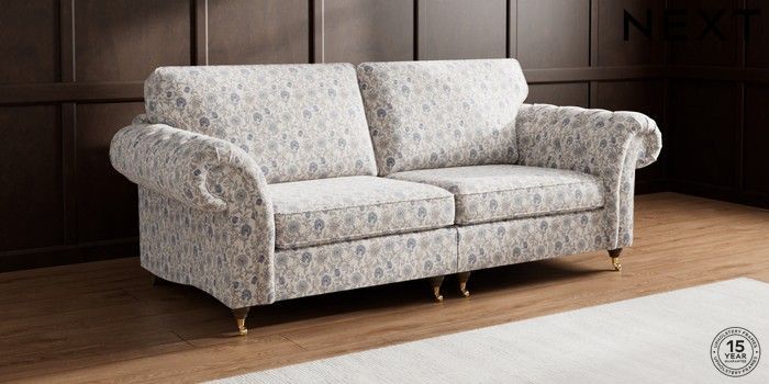 7.3.1 Buy Gosford Highback II Deep Sit 4 Seater Sofa Relaxed Linen Look Print Woodblock Floral Blue Castor - Mid from the Seasons online shop