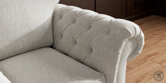 • . Over scaled arms with luxurious deep buttoning