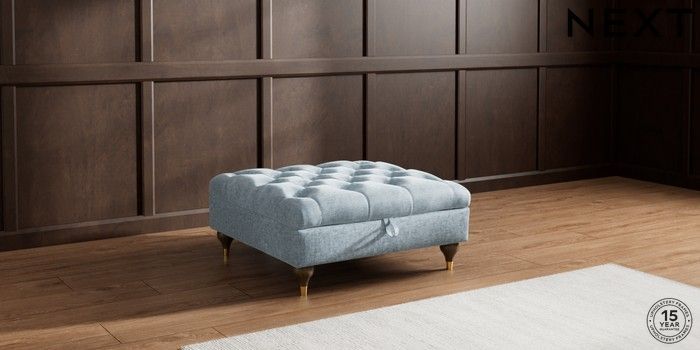 7.3.1 Buy Gosford Highback II Deep Sit Extra Large Storage Footstool Plush Chenille Light Blue Modern Turned Metal Cap - Mid from the Seasons online shop Click here to use our website with more accessibility support, for example screen readers