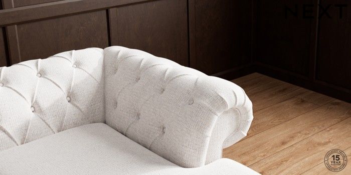 • . Over scaled arms with luxurious deep buttoning