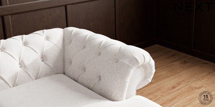 • . Over scaled arms with luxurious deep buttoning