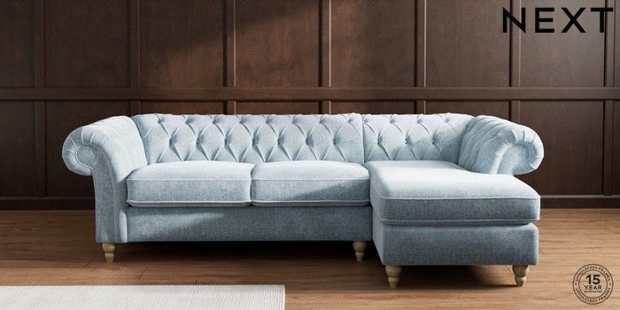 7.2.10 Buy Gosford Highback II Deep Sit Medium Sofa Chaise - Right Hand Plush Chenille Light Blue Low Turned - Light from the Seasons online shop Click here to use our website with more accessibility support, for example screen readers