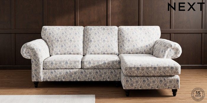 7.3.1 Buy Gosford Highback II Deep Sit Medium Sofa Chaise - Right Hand Relaxed Linen Look Print Woodblock Floral Blue Low Turned - Dark from the Seasons online shop Click here to use our website with more accessibility support, for example screen readers