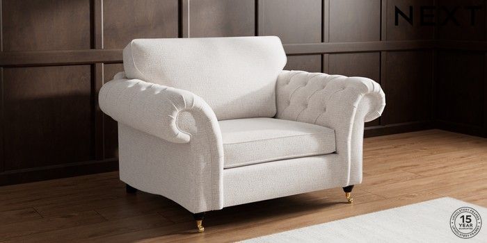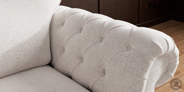 • . Over scaled arms with luxurious deep buttoning