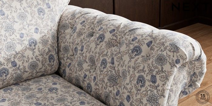 7.3.1 Buy Gosford Highback II Deep Sit Snuggle Relaxed Linen Look Print Woodblock Floral Blue Modern Turned Metal Cap - Mid from the Seasons online shop