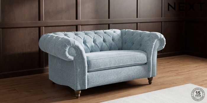 7.2.10 Buy Gosford II Deep Sit 2 Seater Small Sofa Plush Chenille Light Blue Low Turned - Mid from the Seasons online shop Click here to use our website with more accessibility support, for example screen readers