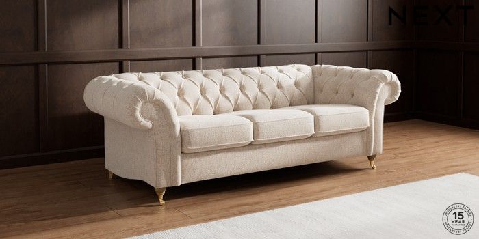Bring timeless charm and comfort into your home with the Gosford Chesterfield. This sofa boasts stunning hand-crafted deep buttoning and is built for lasting support. Its unique "Firmer Sit" seat cushions offer ultimate comfort and durability, always returning to their neat, tailored shape. These cushions are low-maintenance and reversible—just rotate and plump them regularly to keep them looking fresh. We've also added luxurious scatter cushions for extra cosiness. Personalise your Gosford by selecting from a wide array of fabrics and various feet options.