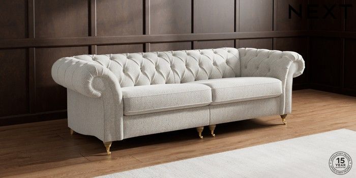Bring timeless charm and comfort into your home with the Gosford Chesterfield. This sofa boasts stunning hand-crafted deep buttoning and is built for lasting support. Its unique "Firmer Sit" seat cushions offer ultimate comfort and durability, always returning to their neat, tailored shape. These cushions are low-maintenance and reversible—just rotate and plump them regularly to keep them looking fresh. We've also added luxurious scatter cushions for extra cosiness. Personalise your Gosford by selecting from a wide array of fabrics and various feet options.