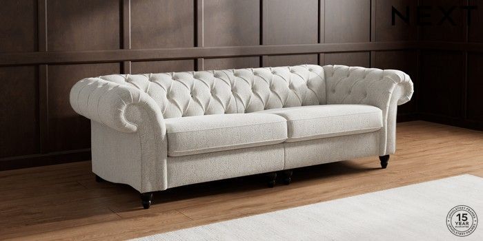 Bring timeless charm and comfort into your home with the Gosford Chesterfield. This sofa boasts stunning hand-crafted deep buttoning and is built for lasting support. Its unique "Firmer Sit" seat cushions offer ultimate comfort and durability, always returning to their neat, tailored shape. These cushions are low-maintenance and reversible—just rotate and plump them regularly to keep them looking fresh. We've also added luxurious scatter cushions for extra cosiness. Personalise your Gosford by selecting from a wide array of fabrics and various feet options.