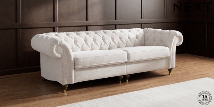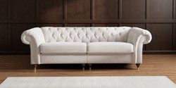 Bring timeless charm and comfort into your home with the Gosford Chesterfield. This sofa boasts stunning hand-crafted deep buttoning and is built for lasting support. Its unique "Firmer Sit" seat cushions offer ultimate comfort and durability, always returning to their neat, tailored shape. These cushions are low-maintenance and reversible—just rotate and plump them regularly to keep them looking fresh. We've also added luxurious scatter cushions for extra cosiness. Personalise your Gosford by selecting from a wide array of fabrics and various feet options.