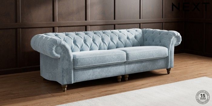 7.2.10 Buy Gosford II Deep Sit 4 Seater Sofa Plush Chenille Light Blue Low Turned - Mid from the Seasons online shop Click here to use our website with more accessibility support, for example screen readers