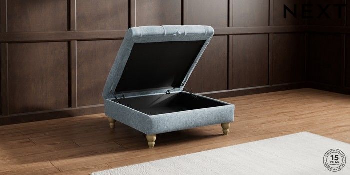 7.2.10 Buy Gosford II Deep Sit Extra Large Storage Footstool Plush Chenille Light Blue Low Turned - Light from the Seasons online shop Click here to use our website with more accessibility support, for example screen readers