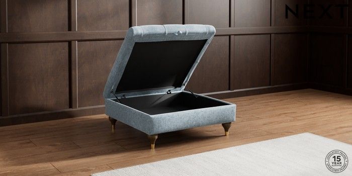 7.2.10 Buy Gosford II Deep Sit Extra Large Storage Footstool Plush Chenille Light Blue Modern Turned Metal Cap - Mid from the Seasons online shop Click here to use our website with more accessibility support, for example screen readers