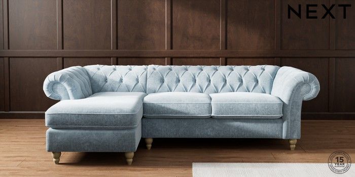 7.2.10 Buy Gosford II Deep Sit Medium Sofa Chaise - Left Hand Plush Chenille Light Blue Low Turned - Light from the Seasons online shop Click here to use our website with more accessibility support, for example screen readers