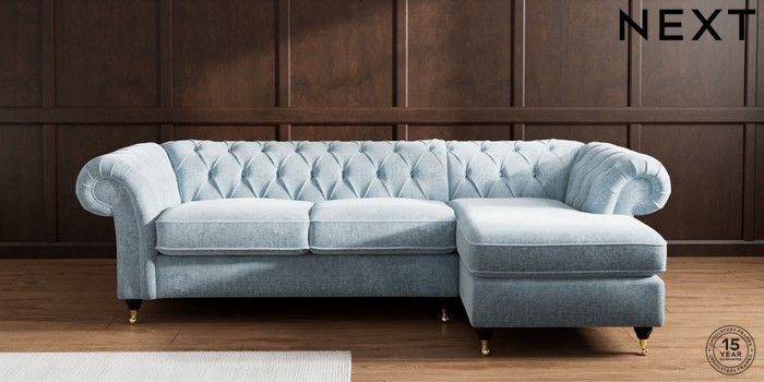7.2.10 Buy Gosford II Deep Sit Medium Sofa Chaise - Right Hand Plush Chenille Light Blue Castor - Dark from the Seasons online shop Click here to use our website with more accessibility support, for example screen readers