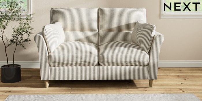 7.2.10 Buy Hartley Highback Relaxed Sit 2 Seater Sofa Chenille Stripe Moss Green Low Conical - Light from the Seasons online shop Click here to use our website with more accessibility support, for example screen readers